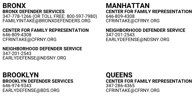 Llame a estos defensores públicos para recibir asistencia legal gratuita de acuerdo a su condado.